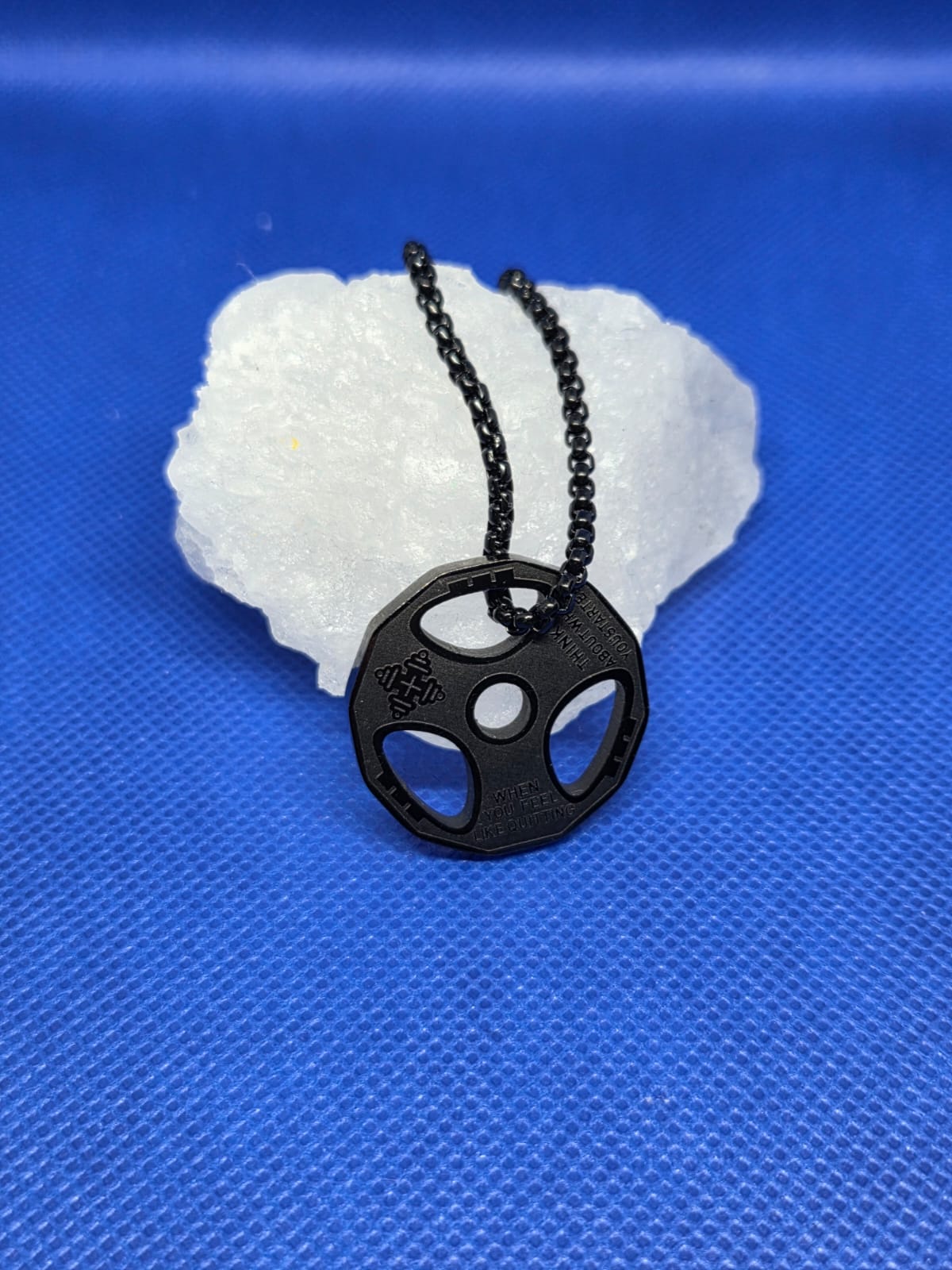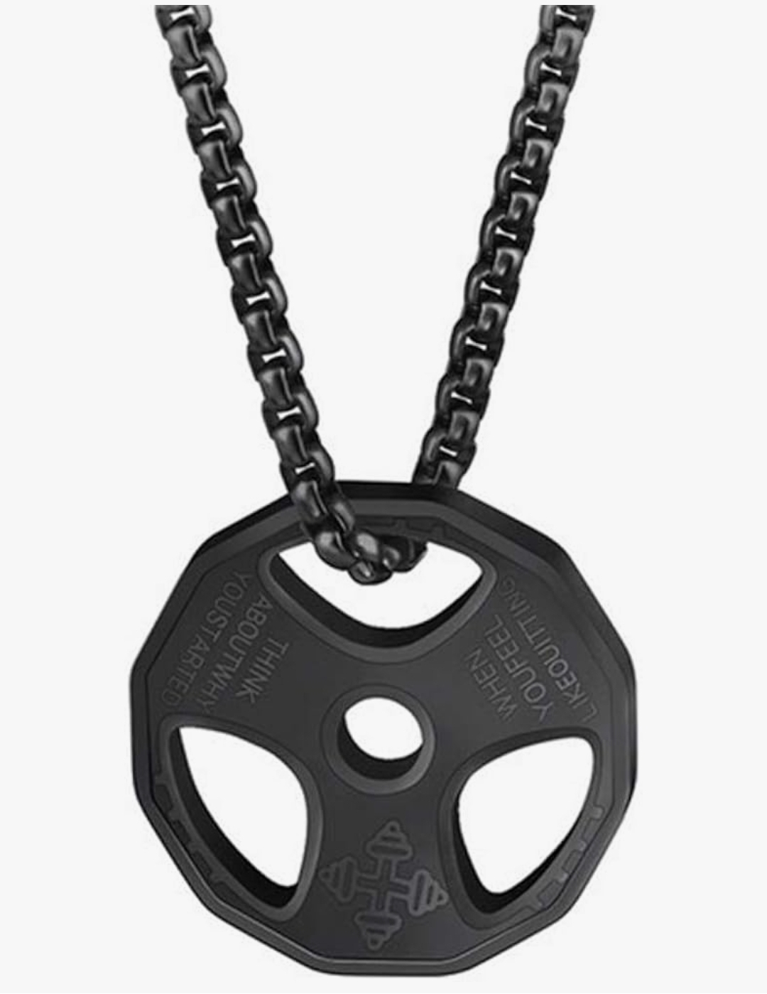 Halskette mit Hantelscheibe als Anhänger.